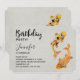 Una invitación de cumpleaños con una ilustración de un par de peces koi dorados nadando juntos.