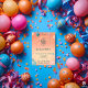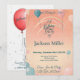 Celebre el cumpleaños de su hijo con esta adorable invitación con tema de globos que presenta a un dulce elefante bebé. Personalícela con el nombre de su hijo, los detalles del evento y un mensaje personalizado para hacer que la celebración sea verdaderamente especial. El diseño caprichoso del animal y los acentos juguetones agregan un toque divertido y alegre, perfecto para una fiesta de cumpleaños memorable.