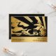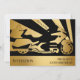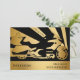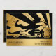 Brillante tarjeta de invitación dorada con una impresionante motocicleta en la parte delantera. Frases de texto de personalizable para una invitación de cumpleaños para los entusiastas de la moto. Puede utilizarse como cualquier otra invitación a un evento con temática de motocicleta.