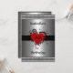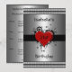 Invitación Cumpleaños Corazón Rojo sobre Plata con borde Negro