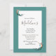 Una encantadora sirena flotando en la tarjeta es la base de este diseño de invitación personalizada de cumpleaños en un fondo azul turquesa.