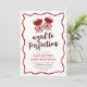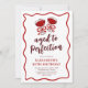 Al igual que un vaso de buen vino, los cumpleaños son mejores con la edad. Estas divertidas invitaciones de cumpleaños para adultos muestran los detalles de tu fiesta con estilo con un fondo blanco elegante, una cautivadora frontera roja ondulada y dos copas de vino diseñadas con gusto con lazos rojos. Todo con el título 'Envejecido a la perfección' y una plantilla de texto fácilmente personalizable. Haz de tu cumpleaños un evento inolvidable con estas invitaciones únicas.