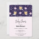 Invitación de baby shower con un adorable patrón con gatitos astronautas flotando en el espacio. Divertido y caprichoso.