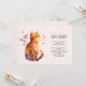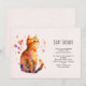 Una invitación para baby shower con una adorable ilustración de acuarela. Un gato atigrado naranja que parece amigable y feliz con corazones que giran alrededor.