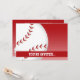 Genial tarjeta de invitación de cumpleaños de béisbol de dibujos animados rojos y blancos.