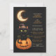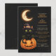 Invite a tus invitados a una celebración espeluznante con este adorable diseño de Halloween. Con un encantador gato negro con sombrero de bruja posado en una calabaza tallada bajo una luna creciente, este diseño es perfecto para una fiesta divertida y no tan aterradora. Personalízalo fácilmente con todos los detalles de tu evento.