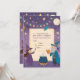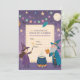 Invite a tus pequeños hechiceros a una celebración mágica con esta Invitación de Cumpleaños de Wizards & Witches. Con encantadores magos, brujas juguetonas, libros de hechizos flotantes, varitas brillantes y estrellas centelleantes, este diseño captura un tema de fantasía caprichosa. Los ricos colores púrpura, azul y dorado, combinados con efectos de luz místicos, crean una atmósfera divertida y mágica. Un espacio en blanco en el centro te permite agregar fácilmente los detalles de la fiesta como fecha, hora y ubicación. ¡Perfecto para fiestas de cumpleaños de niños o adolescentes con un toque de magia!