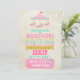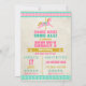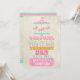© Diseños Socialite. Diseño colorido de carrusel de caballos, texto vintage y fondo de papel manchado para invitación de cumpleaños.