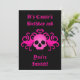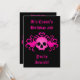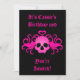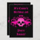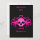 Invitaciones adorables en negro con un cráneo alado con colmillos rosa caliente con un corazón en la parte superior impreso en ellas. Agrega tus datos.