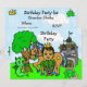 Invitación de cumpleaños de cuento de hadas del Principito para el cumpleaños de tu pequeño. Un pequeño príncipe adorable con una rana, dragón, castillo, caballo y árbol. Este pequeño príncipe tiene la piel más oscura para representar diferentes razas como afroamericano, indio o hispano.