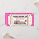 Adorable plantilla de invitación de cumpleaños con entrada de circo vintage rosa y negro. Esta linda invitación de entrada de circo vintage en rosa, negro y blanco se personaliza fácilmente para su evento seleccionando el botón de personalizar.