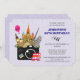 Invitación a una fiesta de cumpleaños con un toque europeo. Diseñado con una gran cámara y muchos monumentos europeos situados detrás. Un autobús de dos pisos, un globo de aire caliente y algunos sellos de viaje también decoran este diseño.