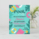 Invitación de cumpleaños del fiesta de piscina brillante y colorida para la edad, cambie todo el texto usted mismo cuando solicite