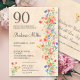 Cumpleaños Floral 90 - Invitación de fiesta 90 años para Flores Silvestres. Celebra un hito especial con esta elegante invitación de cumpleaños número 80, diseñada para una mujer maravillosa. Con un audaz '90' en la parte superior y un delicado diseño floral en tonos suaves de agua, esta invitación combina la sofisticación y el encanto. Perfecto para reunir a sus seres queridos para honrar una ocasión verdaderamente memorable. Agregue todos los detalles de su evento para crear un mantenimiento único y elegante. ¡Disfrútalo!