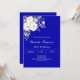 Para un elegante fiesta de invierno. Un fondo azul real decorado con flores blancas, rosas. Personalice y agregue su nombre y detalles.