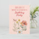 Hermosa ilustración en acuarela de flores silvestres sobre un fondo rosa claro.