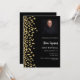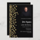 Moderna, elegante e invitada. Un fondo negro decorado con un falso confeti dorado. Personalice y agregue la foto, un nombre y detalles del fiesta. Texto blanco.