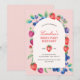 Invitación temática "Berry First" de acuarela con bayas coloridas mezcladas.