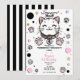 Invitación Cumpleaños de Gatito Gata Rosa Purpura Dorado