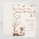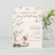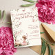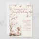 Celebra el mágico primer cumpleaños de tu pequeña hada con esta hermosa invitación temática de hadas. Con una elegante hada del bosque al estilo acuarela sentada junto a un pastel, flores suaves de color rosa, mariposas revoloteando y delicada letra, esta invitación es perfecta para una celebración soñadora y encantadora.