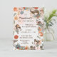 Crea un evento mágico para el primer cumpleaños de tu hijo con esta invitación de hada editable. El diseño de la invitación presenta encantadoras hadas del bosque rodeadas de juguetones animales del bosque y flores. La invitación de cumpleaños es ideal para invitar a tus invitados a una fiesta temática de hadas de otoño.