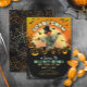 Un espantapájaros con la cabeza de calabaza, que reluce a Jack O'Lanterns contra un brillante fondo lunar te invitan a unirte al "Triste-Trigo". Esta invitación funciona bien para la fiesta de cumpleaños de Halloween de un niño. La tipografía audaz junto con los detalles de su evento en esta colorida invitación, se puede personalizar para que se adapte a otros tipos de eventos. Busque ID1001 para ver otros productos con este aterrador diseño de Halloween.