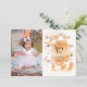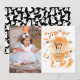 Tarjeta de invitación de cumpleaños de niña con tema de Halloween con ilustración de fantasmas espeluznantes en color agua naranja con un patrón de fantasmas impresos en negro y blanco. El texto dice "Spooky One". Arte original de Caroline Bonne Müller