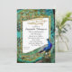 CELEBRACIÓN DE CUMPLEAÑOS DE CUALQUIER AÑO: "Invitación de Tarjeta de Cumpleaños de Hollywood con Brillo Dorado y Pavo Real Art Deco". Estilo chic de la era Great Gatsby, pero diseñado de manera hermosa que lo distingue para eventos de lujo. Esta colección de bodas fue inspirada en el viejo Hollywood y su glamurosa época dorada. Un conjunto de invitaciones de cumpleaños que es perfecto para eventos y celebraciones elegantes, sofisticadas, formales modernas o de etiqueta negra. Un clásico y hermoso florecimiento de volutas en relieve en rico azul verdoso y turquesa son parte de un fondo de collage que destaca al solitario pavo real que mira hacia atrás sobre su hombro hacia el texto de la invitación. En el reverso hay un conjunto de plumas de cola de pavo real, collageado junto con primeros planos de diseños de