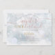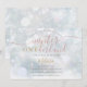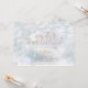 Una linda invitación de cumpleaños número uno de invierno ONEderland con tipografía elegante y delicados copos de nieve sobre un fondo de escarcha invernal. Diseñada por Thisisnotme©