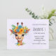 Invitación de cumpleaños con una ilustración caprichosa de acuarela que presenta una cara de jirafa que lleva una corona floral hermosa de primavera. Colorido y lindo.