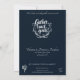 Desbloquea una noche de sofisticada celebración con esta ornamentada invitación de cumpleaños. Esta invitación, con su filigrio barroco, sus profundos matices navales y sus brillantes acentos dorados, desborda el misterio, la elegancia y la exclusividad. Perfecto para cumpleaños de lujo, eventos de inspiración vintage y bailes de máscaras.