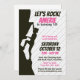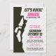 Rock! Este divertido diseño es perfecto para un fiesta de escalada en roca de chica. La invitación incluye una silueta de un chica con puffs que trepan una montaña o una pared de roca. El texto negrita, rosa y negro capta su atención para hacer que su fiesta sea inolvidable. Todo el texto se puede editar para una personalización definitiva.