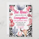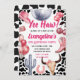 ¡Haga bromas retro con nuestra **Invitación de cumpleaños de retro rosado**! Mezclando vigas occidentales antiguas con un toque rosa lúdico, esta invitación incluye fuentes retro, gorras de cowgirl, botas y estrellas, perfectas para la elegante celebración de tu niñita. Personalizar con los detalles de su fiesta y prepárate para una fiesta de cumpleaños de rootin’ tootin. 💖 🤠 🌟