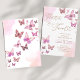 Eleva tu día especial con nuestra encantadora invitación a la boda de mariposa, adornada con delicadas mariposas rosadas y doradas que fluyen con elegancia por todo el diseño. Esta exquisita invitación capta la esencia del romance y la elegancia, convirtiéndolo en el preludio perfecto para su celebración. Diseñado con materiales de alta calidad, invita a sus huéspedes a experimentar la magia de su historia de amor con estilo.