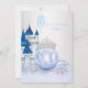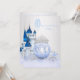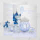 Invitación de cumpleaños de Cenicienta con carruaje de princesa de diamantes azules y plateados y fondo de castillo. Esta hermosa invitación de cumpleaños de princesa Cenicienta azul y plateada de cualquier número es fácilmente personalizable para su evento simplemente agregando sus detalles en el estilo de fuente y color, y redacción de su elección. Este es un diseño impreso sin brillo real, diamantes, perlas, etc.