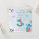 Sirena púrpura bajo el mar con criaturas marinas. "Únete a la celebración submarina con esta encantadora invitación de cumpleaños de sirena morada y dorada. Hermosa cola de sirena y un caprichoso paisaje marino, lo que lo hace perfecto para cualquier pequeño día especial de sirena.