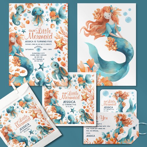 ¡Haga un chapuzón con esta deliciosa sirena bajo la invitación de cumpleaños de los niños del mar! Con una adorable sirena, conchas, estrellas de mar y detalles caprichosos del océano, esta invitación es perfecta para una mágica celebración de temática subacuática. Ideal para los amantes de las sirenas y de los niños amantes del océano, ofrece el ambiente ideal para una fiesta de cumpleaños divertida, caprichosa e inolvidable bajo el mar.