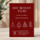 chicas fiesta de cumpleaños de diciembre, rojo oh qué invitación divertida, qué divertido invitación de cumpleaños, moderno, rojo encabezado retro, casa de jengibre, invitación de cumpleaños de navidades editables, navidades retro, invitados navidades a mano, árbol de navidad peculiar
