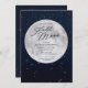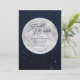 Elegante invitación de cumpleaños con una luna llena en un cielo estrellado. La invitación dice: Luna Llena