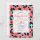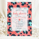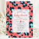 Celebra la próxima llegada con esta elegante invitación de baby shower que presenta una estilizada estampa de leopardo en rosa y azul marino. Perfecta para un baby shower moderno y trendy, este diseño combina elementos juguetones con detalles elegantes. El patrón audaz y los colores vibrantes lo hacen una opción ideal para dar la bienvenida a una bebé con estilo.