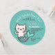 Invitación Cumpleaños de niña redonda azul sirena gato purmai