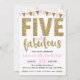 Invitación Cumpleaños de niña rosa y dorado cinco y fabuloso