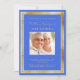 Una invitación de cumpleaños elegante, moderna y sencilla. Un fondo azul real decorado con marcos de oro falso. Personalice y agregue un nombre de foto y detalles. Texto dorado.