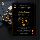 Una invitación de cumpleaños temática de la noche del Casino en negro y oro. Una carta de juego como marco. Plantillas para la información de su fiesta.