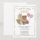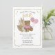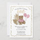 Invitación Cumpleaños de osito marrón boho con globos rosas