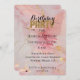 Invitación Cumpleaños de pájaros rosa claro con purpurina dor