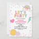 Invitación de cumpleaños con arco iris, corazón y señal de paz.