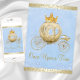 Invitación de cumpleaños de Cenicienta con carruaje dorado de princesa sobre un hermoso fondo azul y dorado brillante de Cenicienta. Esta hermosa invitación de cumpleaños de princesa Cenicienta azul y dorada para niñas de cualquier edad se personaliza fácilmente para su evento simplemente agregando sus datos en el estilo de letra y color, y redacción de su elección. Este es un diseño impreso sin brillo real, diamantes, encaje, etc.