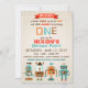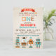 Robots divertidos y nerds con tarjeta de invitación de cumpleaños de diseño de fondo de rayas retro.