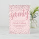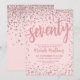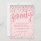 Presentamos una moda y una invitación a la fiesta de cumpleaños número 70, perfecta para marcar este hito especial en estilo. El elegante diseño combina confetti purpurina plateado, lo que le da un toque de diversión y festividad. En la parte superior, "Setenta" se muestra de manera prominente en caligrafía audaz, marcando el tono para una celebración inolvidable. El texto combina guiones y tipos de letra modernos simples en oro rosa, creando un contraste suave y elegante contra el fondo rosa ondulado. El purpurina continúa en la parte de atrás, añadiendo un toque de brillo adicional al diseño general. Esta invitación es perfecta para celebrar 70 años de vida con estilo. Los colores de fondo y fuente se pueden personalizar para que se ajusten a su estilo. Elegante Rosa Purpurina de Oro 70º Invitación a la fiesta de cumpleaños Rubor Confetti Rosa de 70 años. Tenga en cuenta que el purpurina es falso, sin Relieve metalizado ni brillo. Disponible en forma de invitación impresa, o como una invitación digital descargable que puede enviar por correo electrónico o que ha impreso localmente.